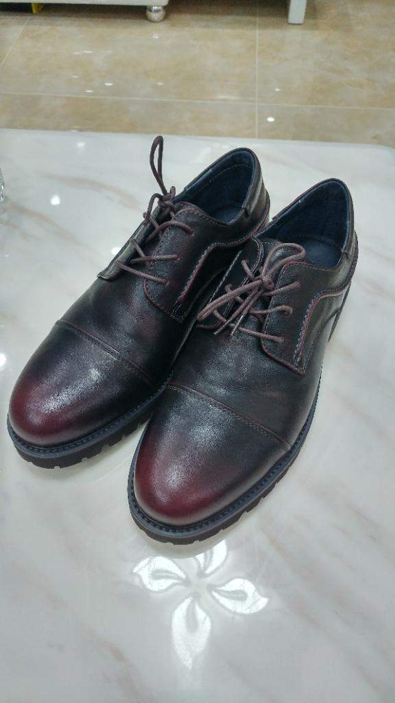 鞋子头部酒红色很骚气,中间开始颜色加深,所以可能和深色裤子更搭一点。晚上拆的包装,正好家人在,迫不及待让拍了几张,毕竟自己不好自拍。感受都是穿了几天后写的