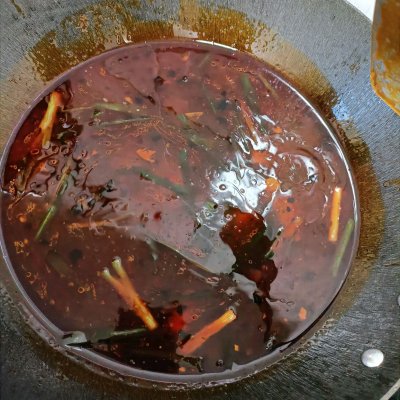 1、1⃣油热放入葱,姜,蒜,辣椒,火锅底料爆香