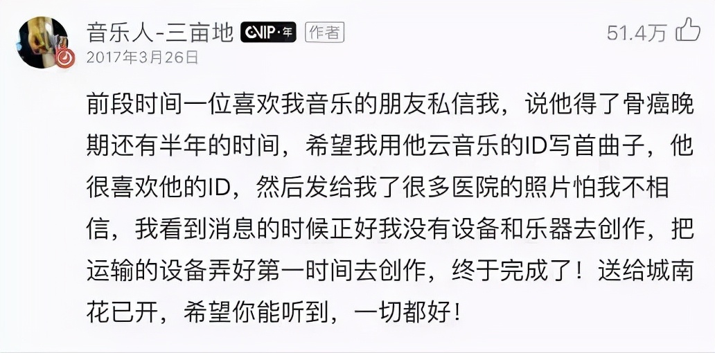 “城南花已开”在那条音乐评论中,发了一条消息:逝者安息。