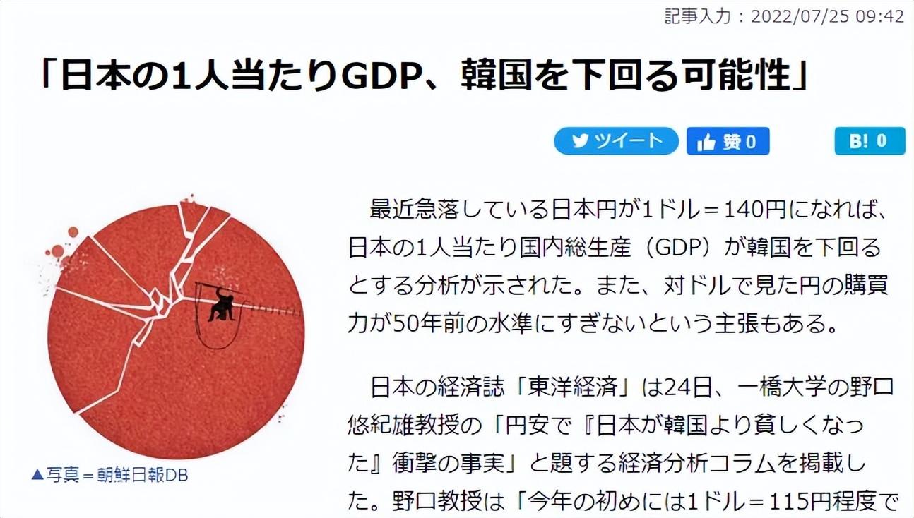 日本媒体惊呼,一个可怕的事实正在出现:由于日元大幅贬值,日本人均GDP它将低于韩国,不到美国的一半。日本、美国和韩国的工资差距也在扩大。这些不仅仅是数字上的变化,说明日本人其实已经变穷了,日本的工业也被削弱了。