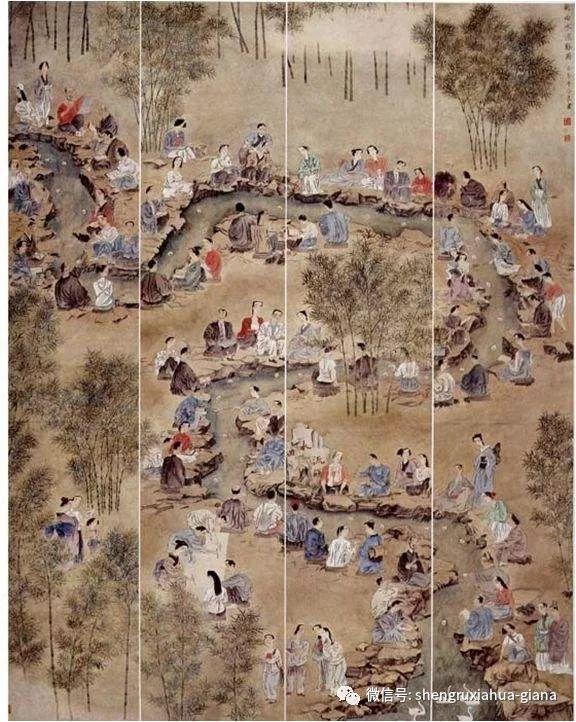 所谓曲水流觞,早先是临水浮枣,也有临水浮卵,它是将煮熟的鸡蛋放在河水中,任其浮移,谁拾到谁食之。想当年简狄吞下的玄鸟之卵,也是祈子的美好愿望啊!后变为“流杯曲水之饮”。所谓“流杯”,也称“流觞”,就是投杯于水的上游,听其随波而下,止于某处,则其人取而饮之。