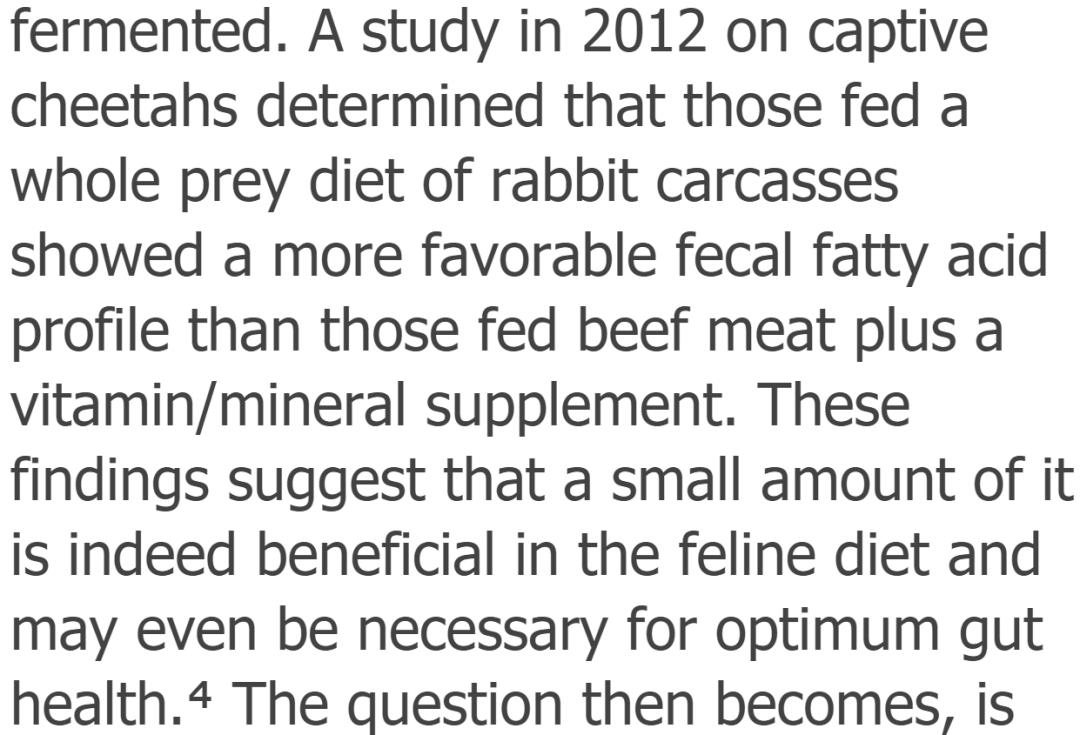 因此,虽然0纤维不违反规定,但它确实可能导致猫的各种胃肠道问题,并且与配方中应该写的原材料不一致