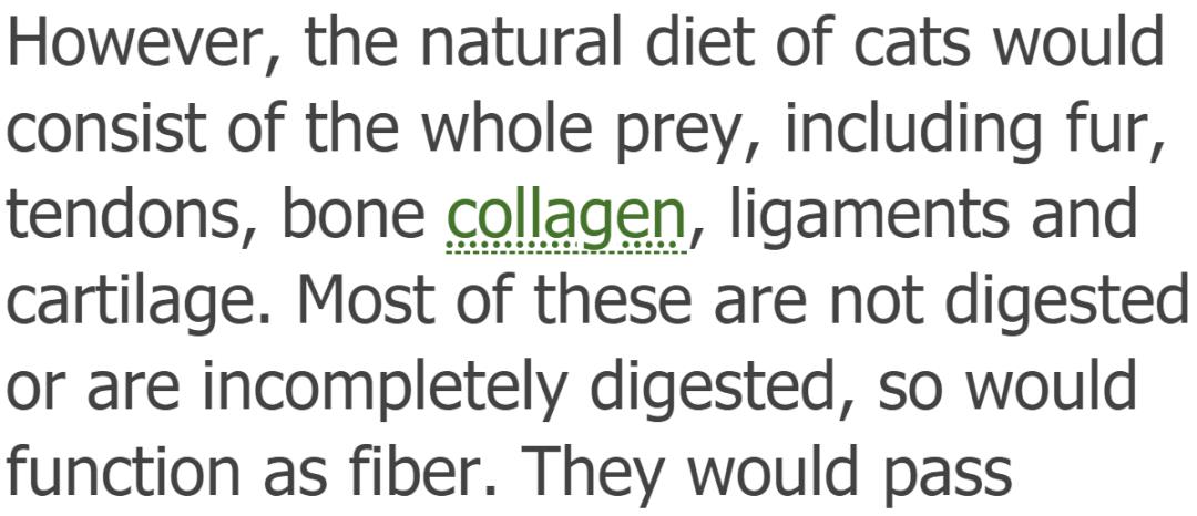 要知道猫在自然界中的摄入量几乎是0.55%的纤维根本不吃纤维