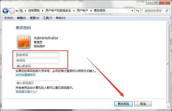 5、在输入框中键入所需要的密码,点击【更改密码】按钮即可