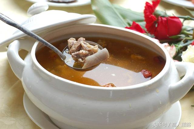 骨汤抗衰老:骨汤中的特殊养分以及胶原蛋促进微循环,50-59岁这十年是人体微循环由盛到衰的转折期,骨骼老化速度快,多喝骨头汤往往可收到药物难以达到的功效。