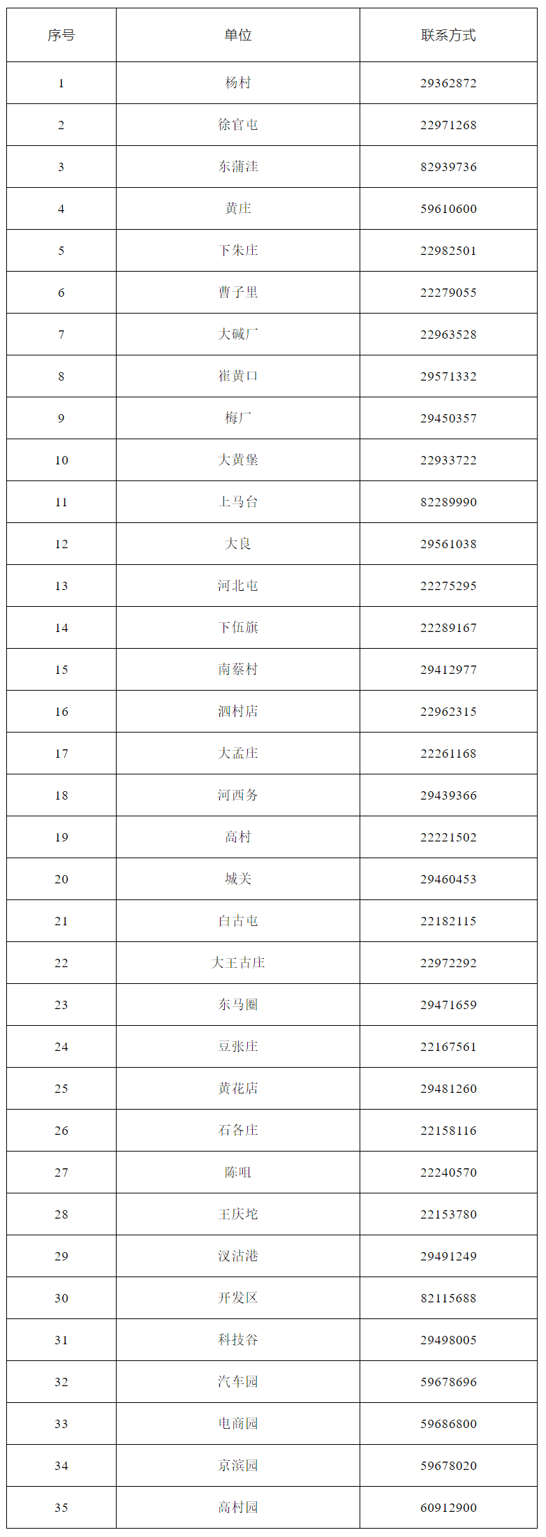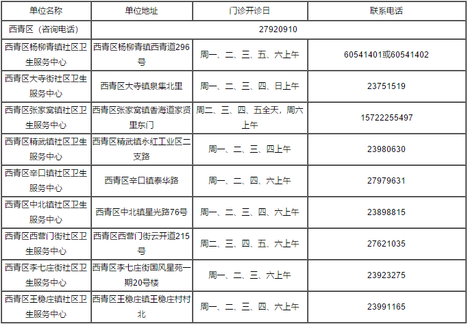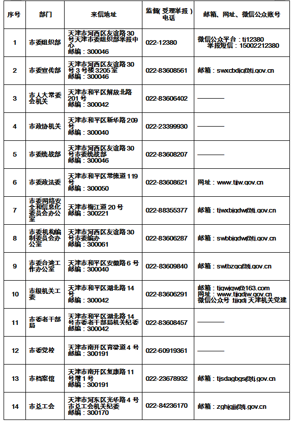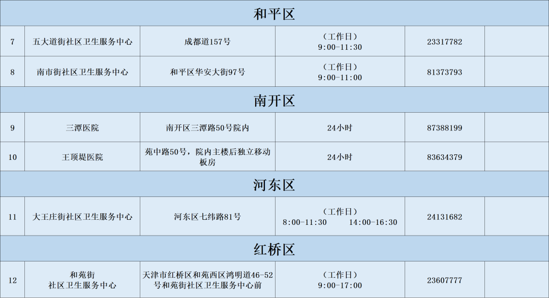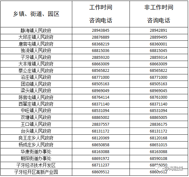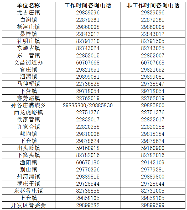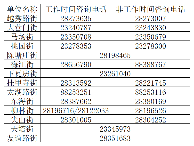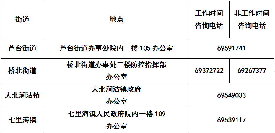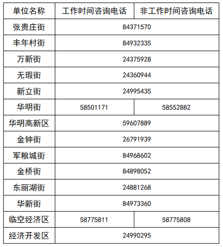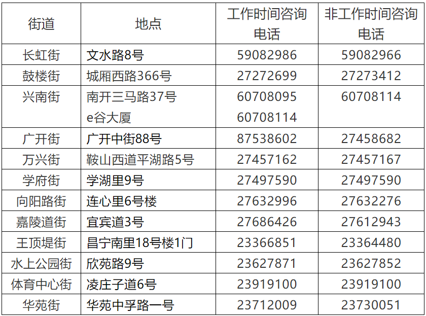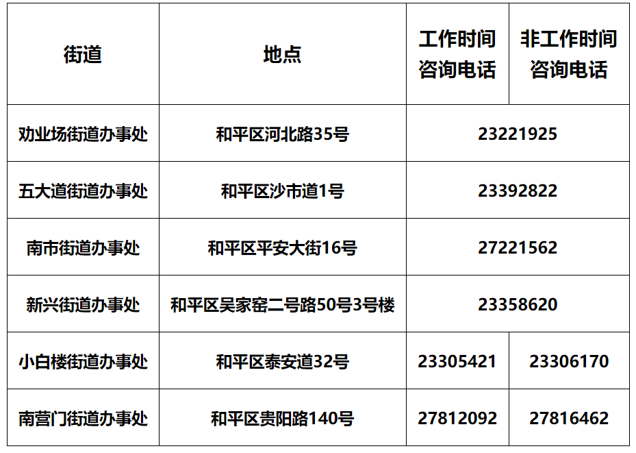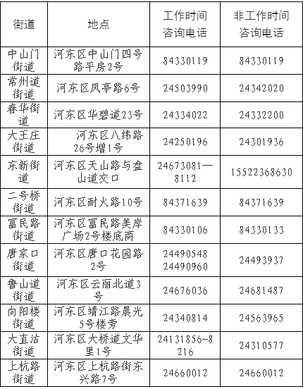 天津各社区街道咨询电话