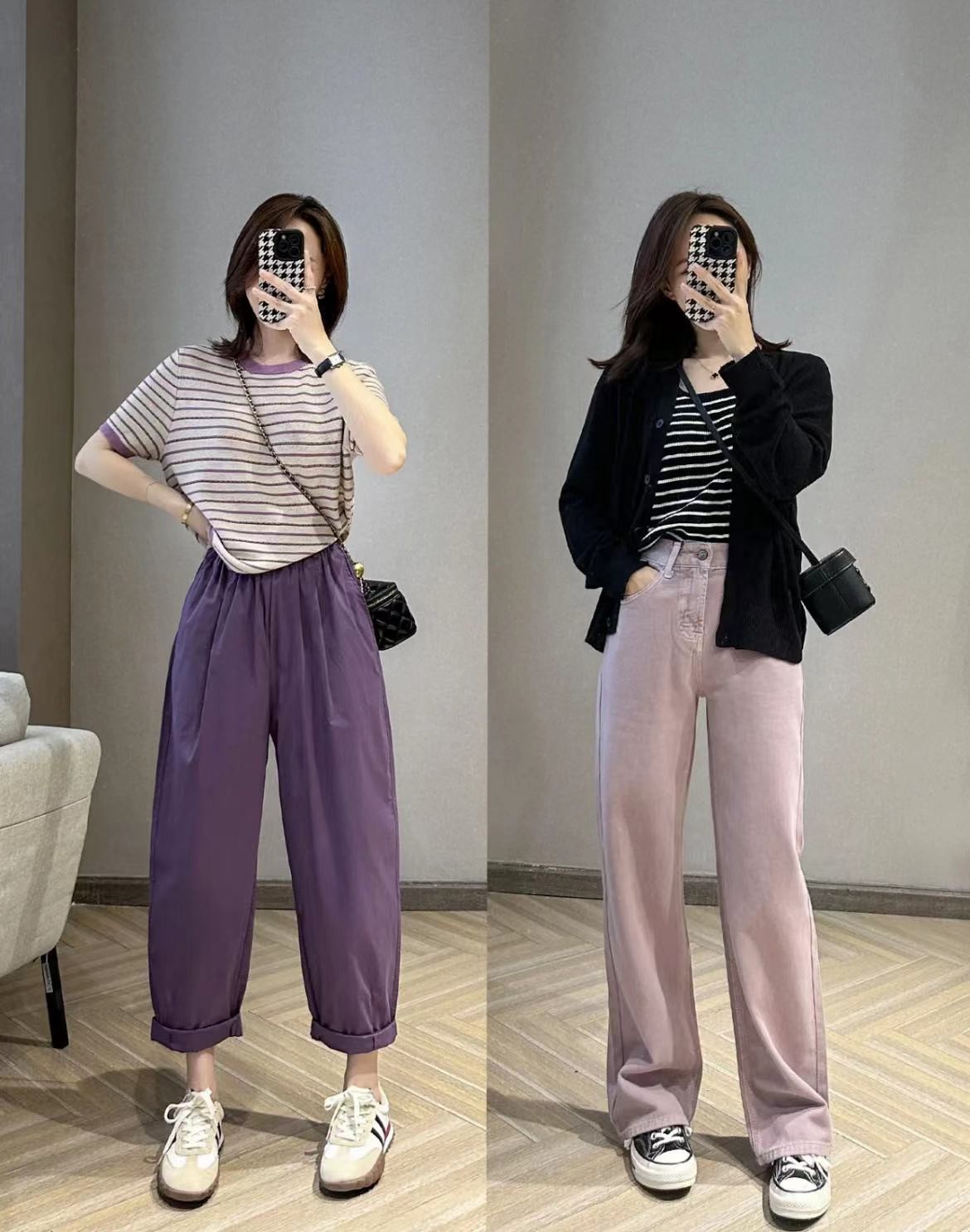 搭配一条直筒裤,穿出随性又休闲的样子,简约的色系亦可以穿出女生的端庄大方,这样的一身简约气质也适用于职场中。