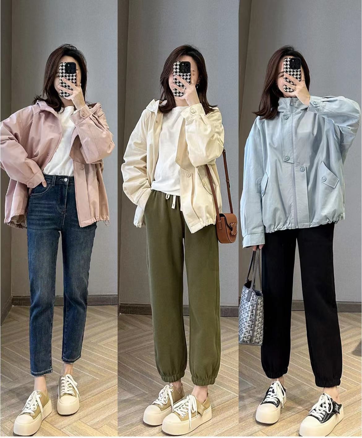 春季的休闲又时尚穿搭也可以简简单单,粉色系的休闲外套,极富运动感,内搭简约的白色T恤衫,非常柔和的一身穿搭。