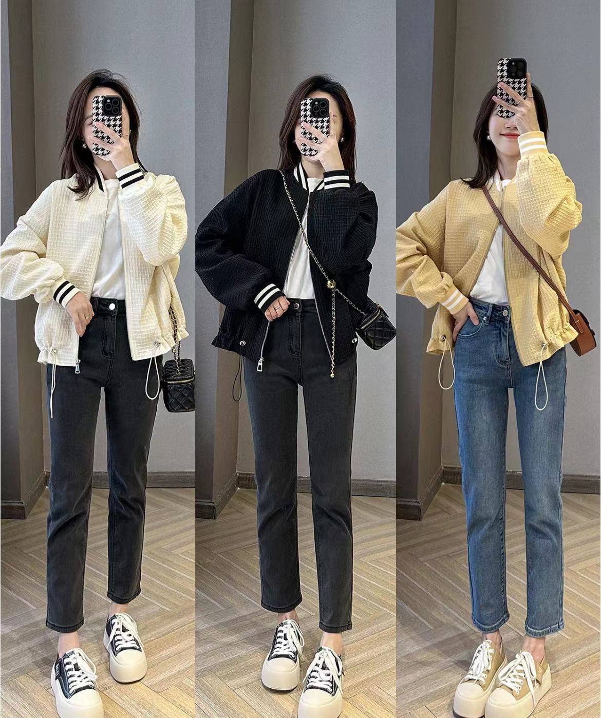 搭配一条修身的铅笔裤,勾勒出女生的腿型轮廓,非常显瘦了,日常这样穿,休闲时尚又很有活力!