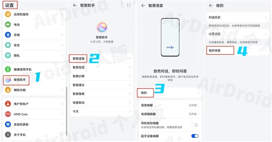 第一步,打开手机自带的【设置】-【智慧助手】-【智慧语音】,进入【我的】-【我的场景】。