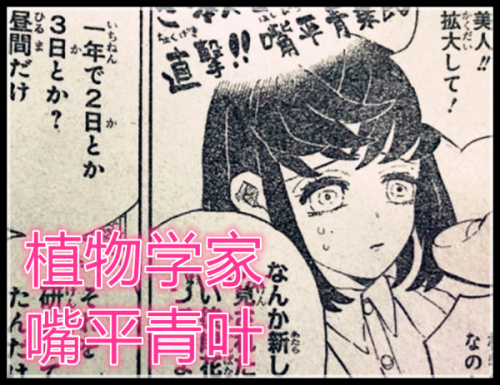 目前,小强团队目前来看,善逸,香奈乎,祢豆子,炭治郎都有后人,而且还是在一起,那么伊之助的后人到哪里去了呢,原来伊之助的后人依然是长得非常漂亮,他成了植物学家,而不是和伙伴们的后人在一起,他的名字叫【嘴平青叶】,原来在报纸上说,这位植物学家发现了【青色的彼岸花】,这是一种一年只盛开两三个晚上的稀有种类,但因为研究小组不小心,让其枯萎了。