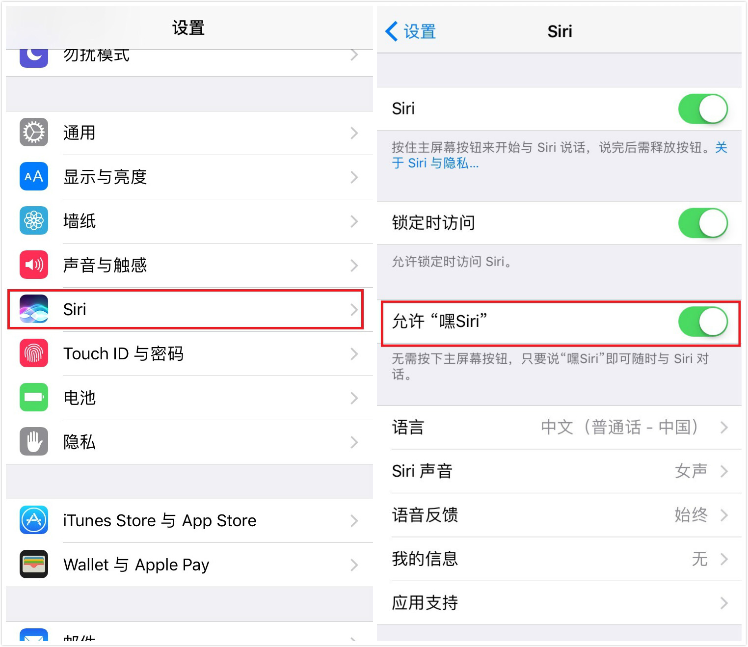 进入【设置】—【Siri】—【允许“嘿Siri”】