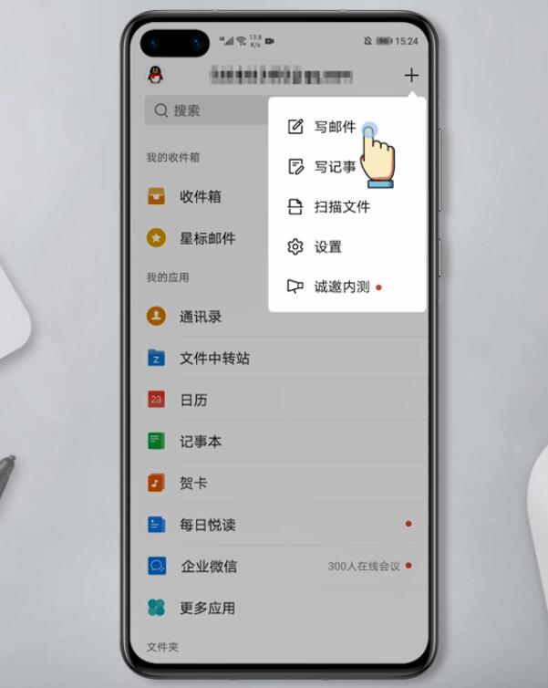 1第一步打开QQ邮箱,点击右上角的+号,写邮件