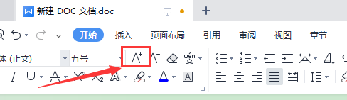 2、然后在上方的菜单栏中点击A+这个按键,就在字体大小下拉框旁边;