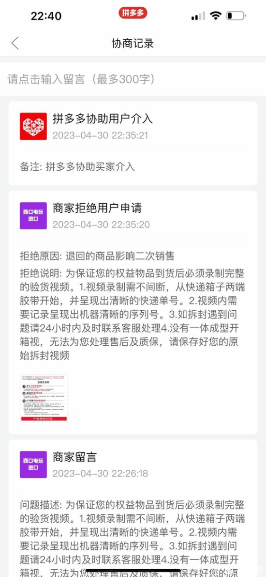 店铺表示,这应该是工艺留痕,活动价也没赚什么钱,想补偿买家30元。后来买家申请拼多多客服介入,商家以影响二次销售为由拒绝了他的申请。由于这个500元券是一小时内限时使用,也很容易让人冲动下单。