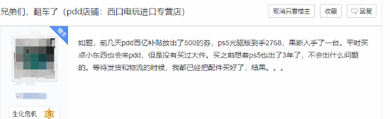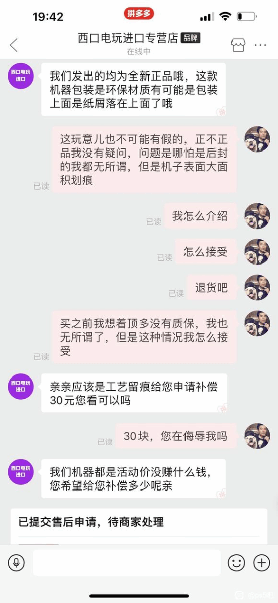 近日,拼多多百亿补贴发放了500元优惠券,有不少玩家使用这个券超低价购买了光驱版PS5,到手价仅2768元。但有人在到货后翻车,发现机器有使用痕迹:划痕以及灰尘。