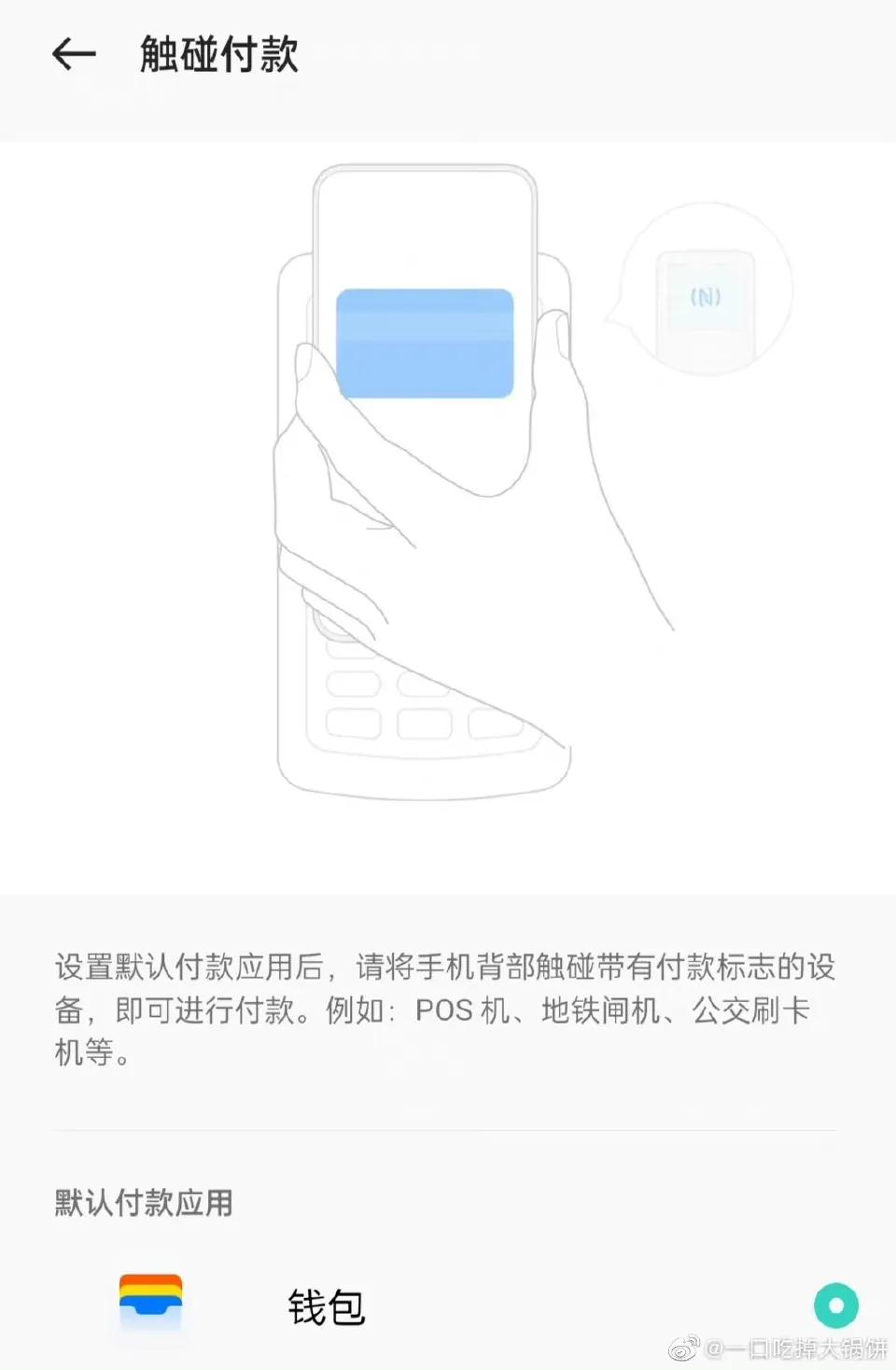 在设置中,开启NFC后,设置默认付款应用,将手机背部触碰带有付款标识的设备即可操作付款。(例如POS机、地铁闸机、公交刷卡机等)