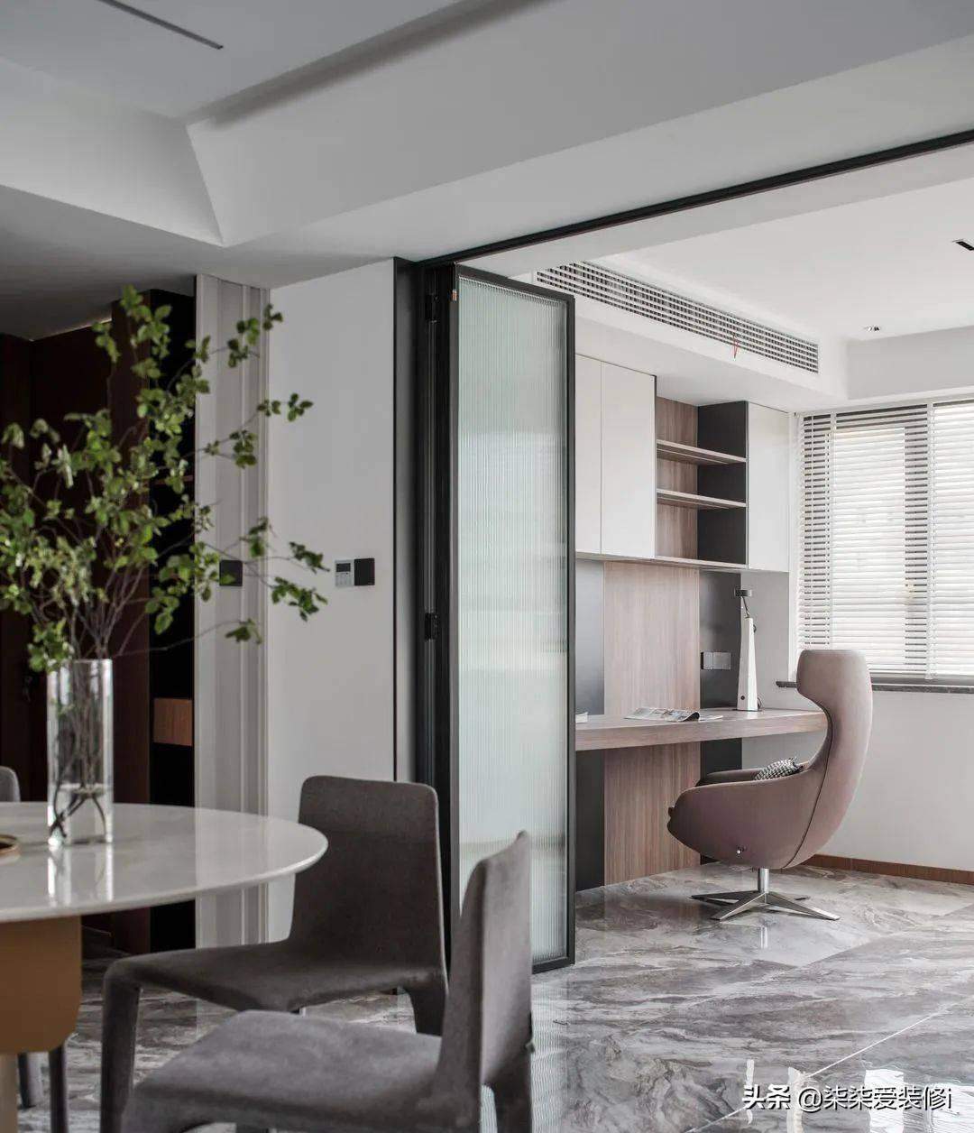 书房大多偏向于独立安静,那一扇折叠门(隔断)也可以让其增色添彩:许多人家的书房隔断,都是实心不透明的,那折叠门所扮演的通透隔断角色,也别有一番趣味~
