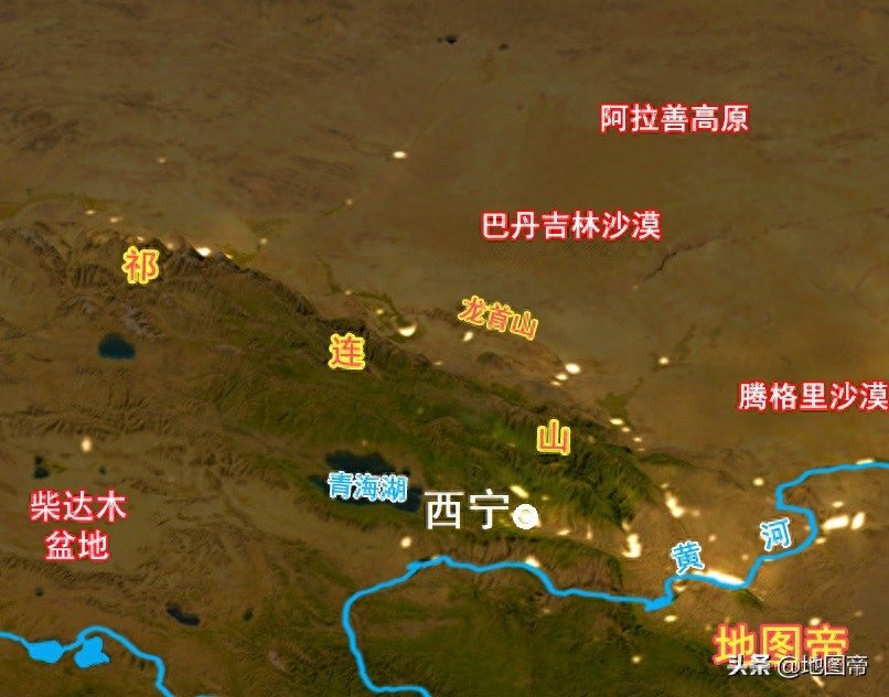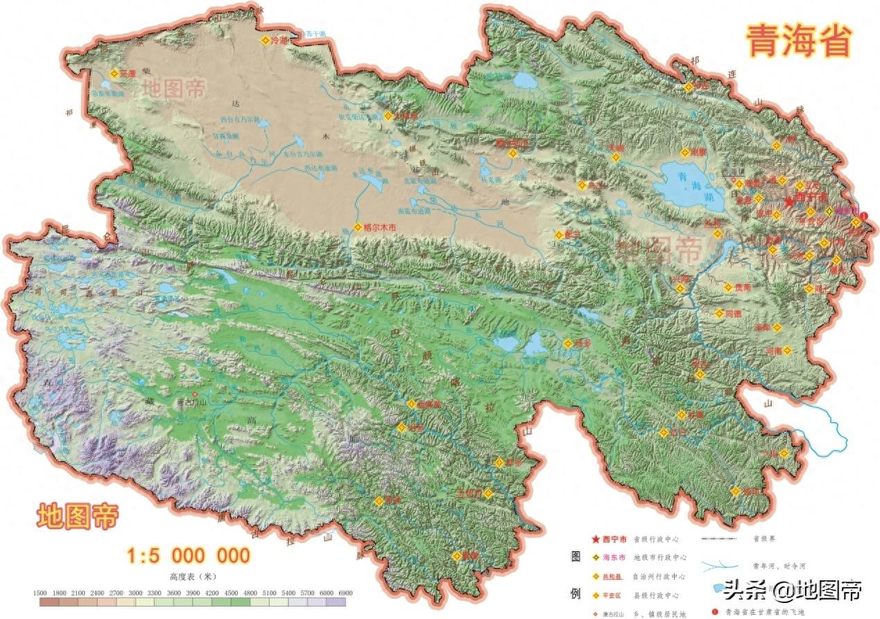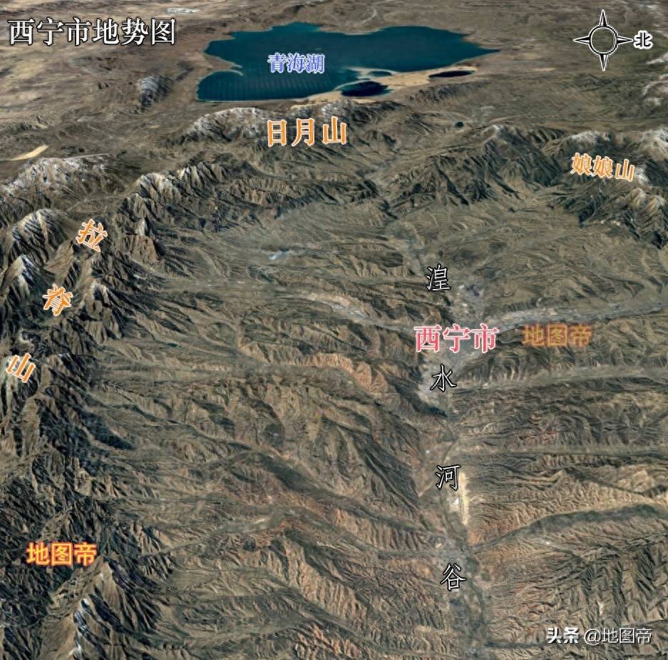 青海省位于我国西北,世界第三极——青藏高原的北部。青海省的地形大致来说是南高北低,约以昆仑山、布尔汗布达山为界,以北是柴达木盆地和黄河流域。黄河流域有著名的河湟谷地,集中着青海省大多数人口,省会西宁即位于此。西宁的西北方向有日月山,山的西边就是青海湖了。
