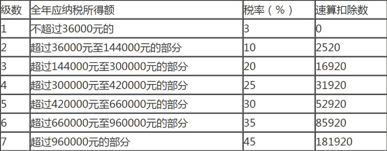 上面是个人所得税税率表(适用于年度计算,和个税申报的计算规则一致)