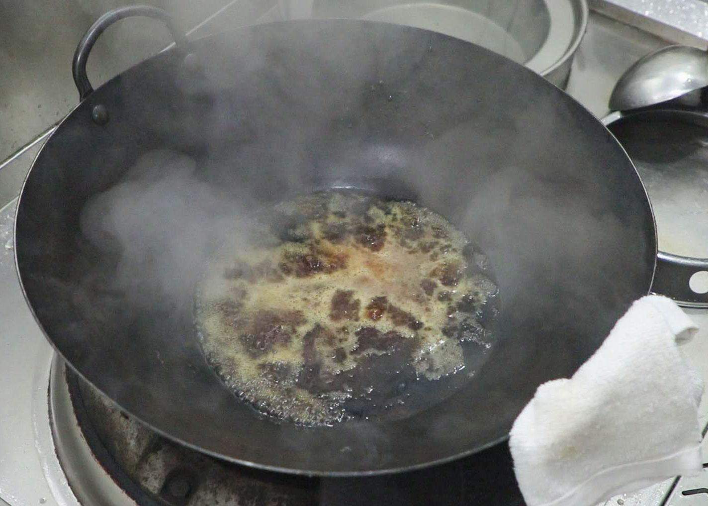 3.把小料煮一下,先把锅洗干净,不能有油。确定干净后,加点清水,水的量估计着能浸着线椒就够用了。