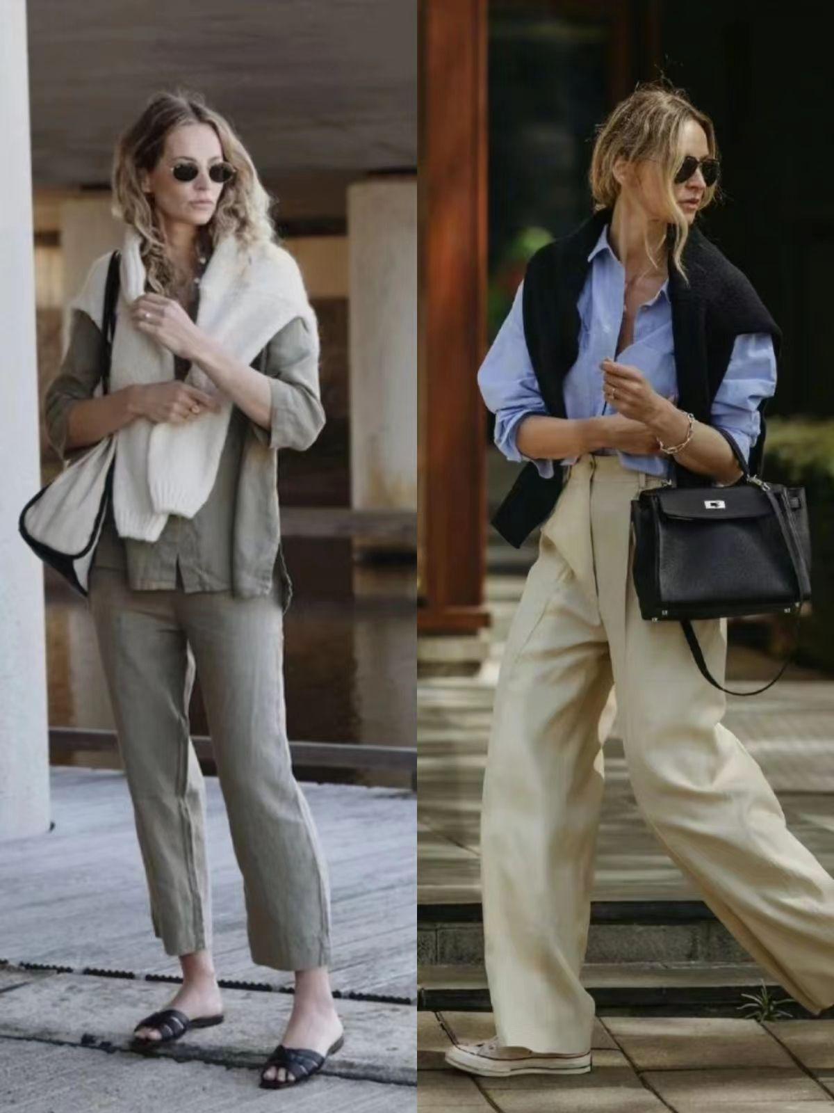 这要求大家选择那些采用直线剪裁且版型挺阔的服饰,比如白衬衫、西服、长风衣、直筒牛仔裤、阔腿西裤。