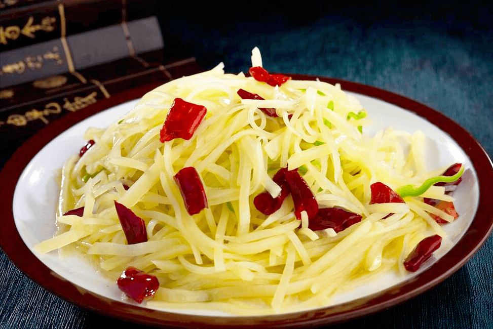 做法:土豆、胡萝卜去皮,切成细丝,辣椒切末,大蒜剁碎备用,热锅冷油,将土豆丝、胡萝卜丝放入炒熟,加入盐、糖、醋炒匀,熄火后,加入辣椒、大蒜、香菜拌匀即可。