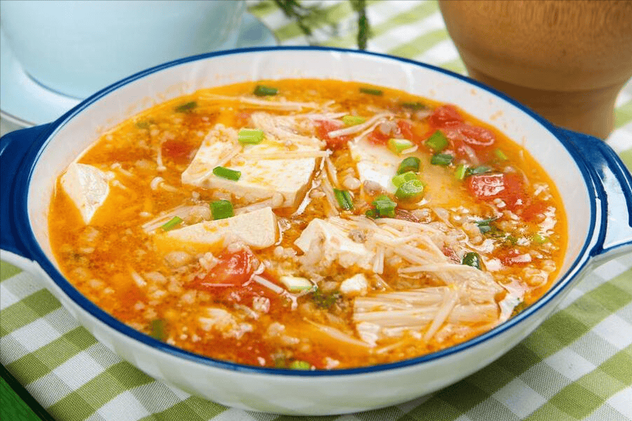 营养功效:番茄富含维生素C和番茄红素,具有抗氧化和美容养颜的功效。金针菇富含膳食纤维和维生素D,有助于促进肠道健康和钙质吸收。豆腐富含优质蛋白质和多种氨基酸,有助于补充身体所需的营养。这道清爽的汤不仅解暑,还能为身体提供丰富的营养。