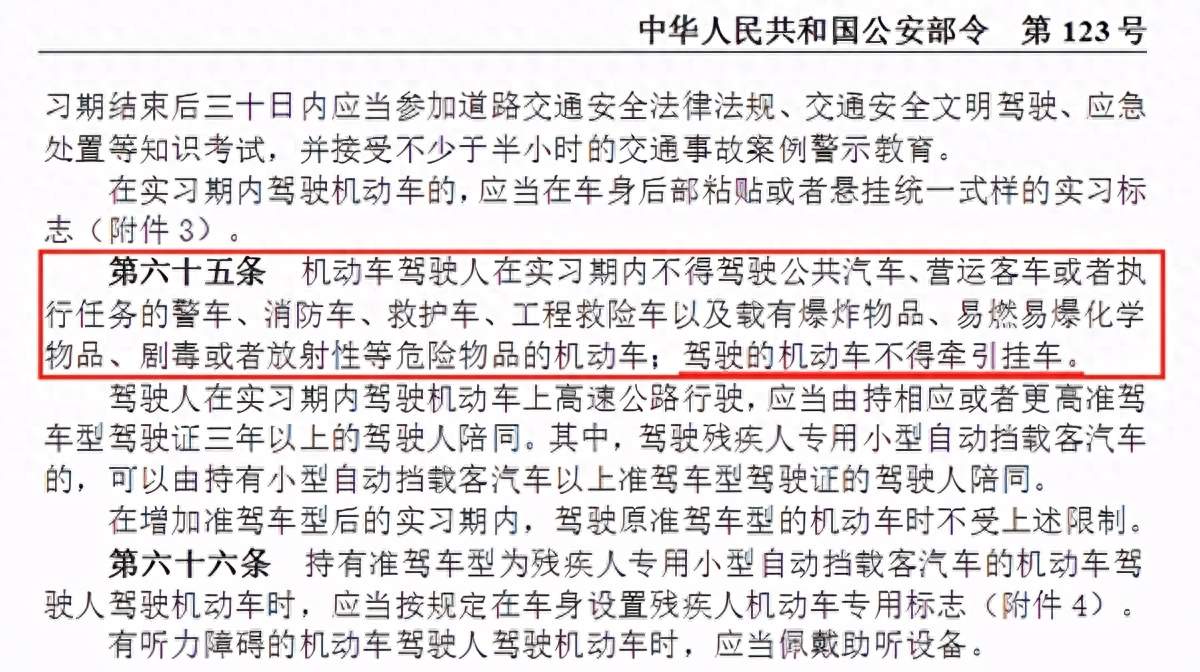 对于增驾A2驾照的卡友,实习期还有一条非常重要的规定:机动车驾驶员在实习期间不得驾驶公共汽车、营运客车或者执行任务的警车、消防车、救护车、工程救险车以及载有爆炸物、易燃易爆化学物品、剧毒或者放射性等危险物品的机动车;驾驶的机动车不得牵引挂车。