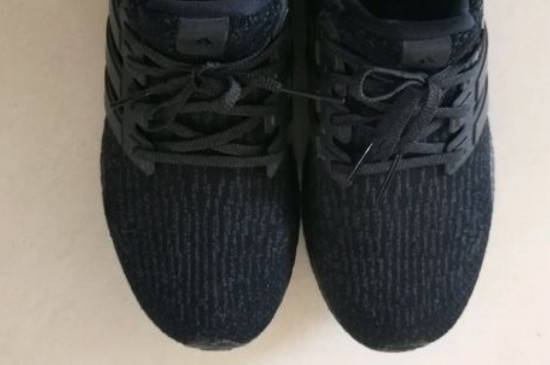 缝补完之后查看鞋面自然程度,基本颜色一致是看不出来的,如果有部分针织部分被针线挤压出来,看起来比较突出的话,可继续用针线将编织缝补在鞋面上。穿boost编织鞋的时候,要勤剪脚趾甲,这样就能减少对鞋的磨损。