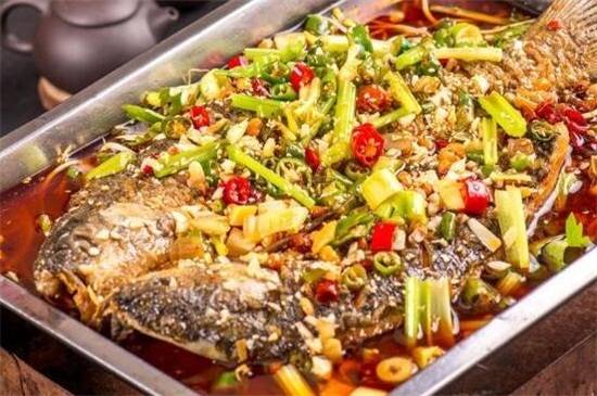 还要将鱼的身子切开,沿着脊骨划开,保持鱼肉和另一边相连,在鱼身上放入一些食盐、花椒粉、生抽、耗油、孜然粉、辣椒油等调味料一起混合腌制1~2个小时,再将其放在烤箱中,设定温度后就可以了。