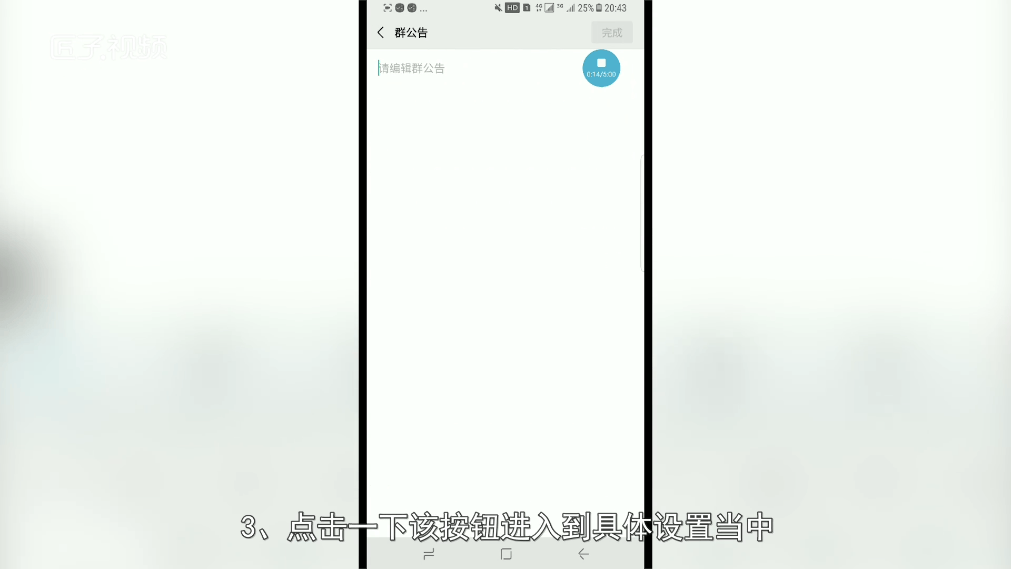 编辑你想要发布的内容,输入完毕之后,点击右上角的完成按钮。系统会提示你是否通知群成员,只需要点击发布即可。这样,别人的微信上就会突出的显示出自己被艾特了,你就完成了通知所有人的目的。