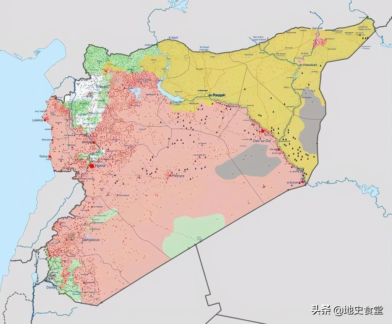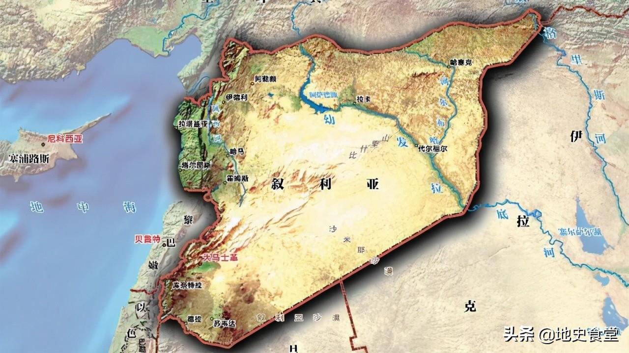 从地图上看,叙利亚的版图非常有特点,北部和南部边境线基本都是从东北向西南倾斜的斜线。