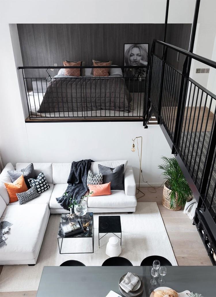 也有人牺牲二楼的层高来满足一楼的舒适。把二楼打造成一个专门睡觉的小阁楼,只要站起来不磕到头就OK了。