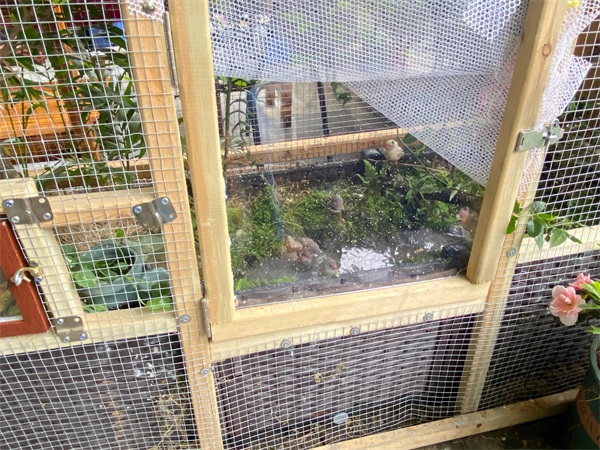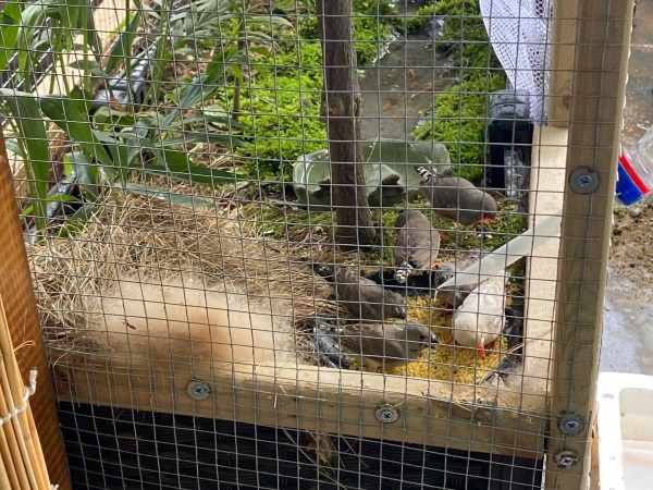 珍珠鸟爱好洗澡,饲养的朋友可以准备好它们的洗澡盆,放清水,它们会自己去洗澡。我这里生态鸟笼循环池水很干净。