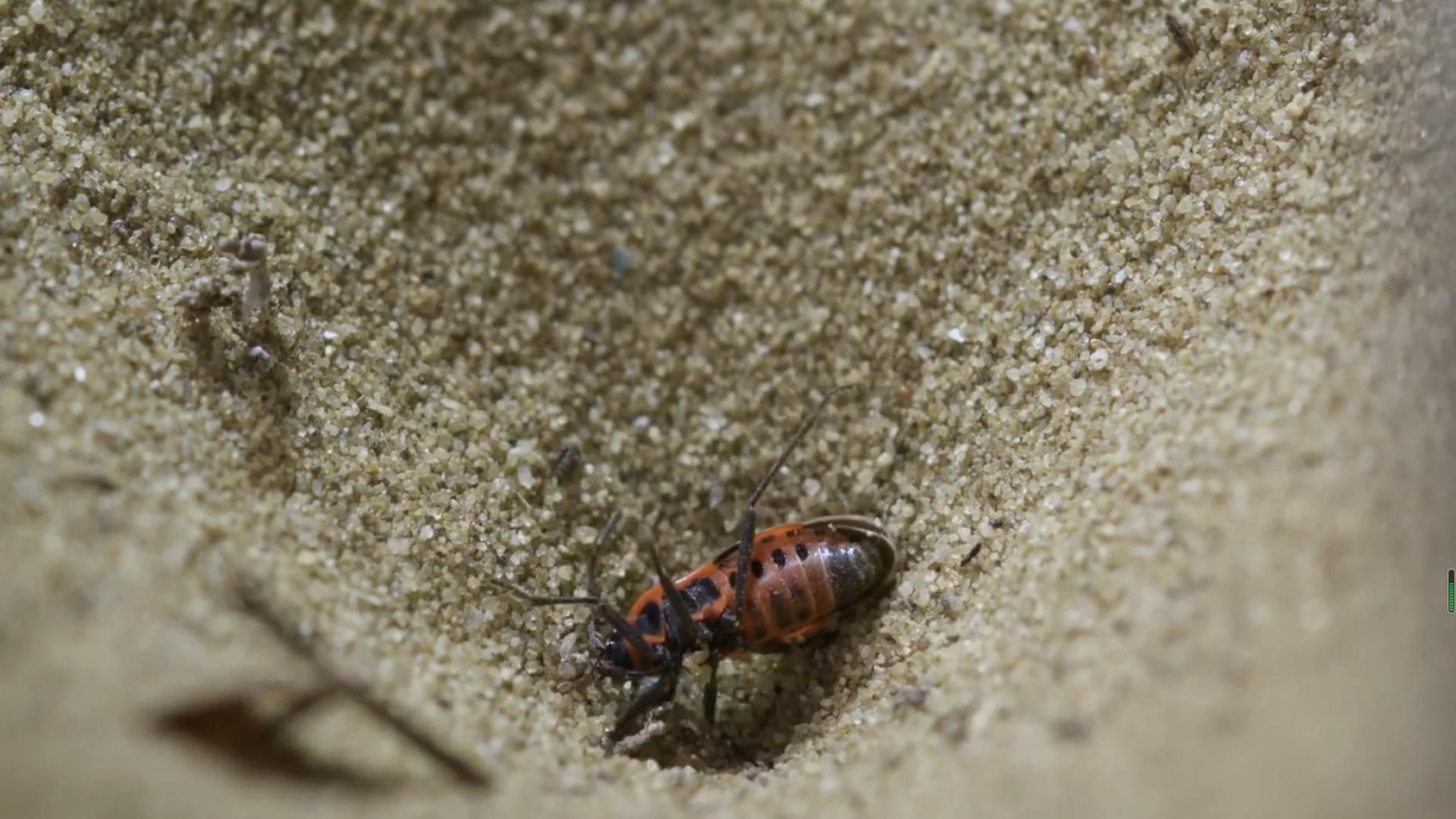 为了方便捕猎,蚁狮甚至只会后退倒着走,每当遇到危险时,它们便会迅速倒退着在旁边挖出一个坑洞将自己藏匿起来。