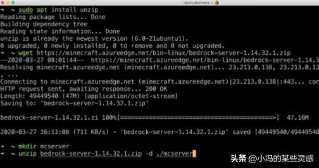 unzipbedrock-server-1.14.32.1.zip –d ./mcserver