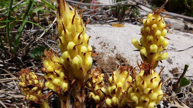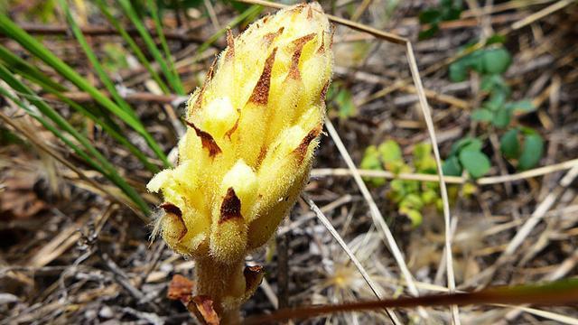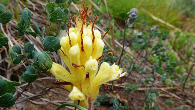从图片中我们不难分辨,虽然它是一种野草植物,但是其外貌却相当的明显,它的植株呈金黄色,可以说具有相当高的观赏性,相信大家若有在山里见到,是可以很快识别出来的。补充一点,它的植株外貌除了呈金黄色外,还有一种是紫色,这两种是较为常见的,对于紫色的草本外貌,大家可以参考下一张图片,也是很好识别的。这种野草植物在民间被誉为“不老草”,它是一种一年生寄生草本,经常生长在山坡及沟边草地上,而且生长地段也不高,据了解,一般大约在850米的海拔以上便可以见到它的踪迹。