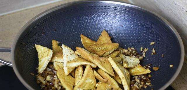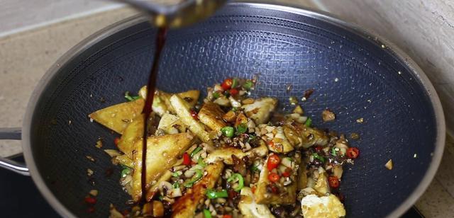 最后就可以放入我们之前煎好的豆腐,在锅中稍微翻拌一下。
