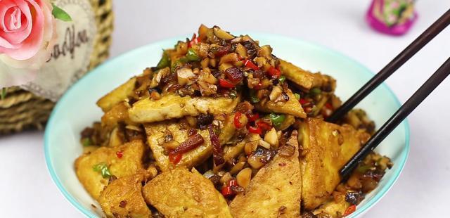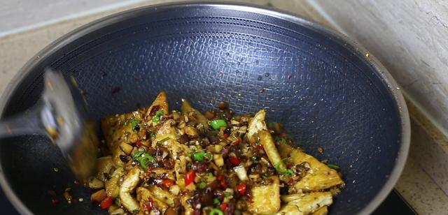 大家在炒这道豆腐的时候,一定要记住,不要在里面加水,这是一道干烧的,只需要豆腐炒入味即可出锅装盘。