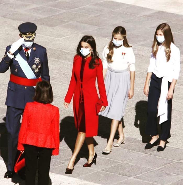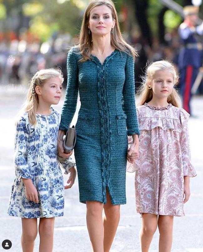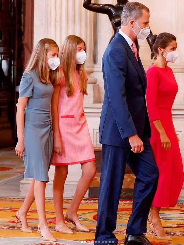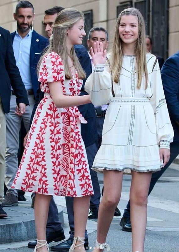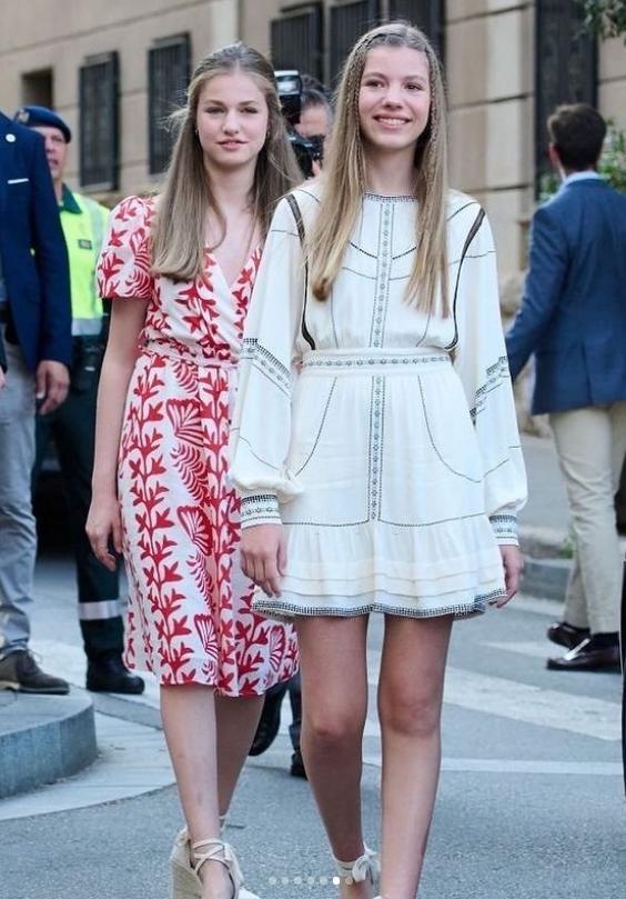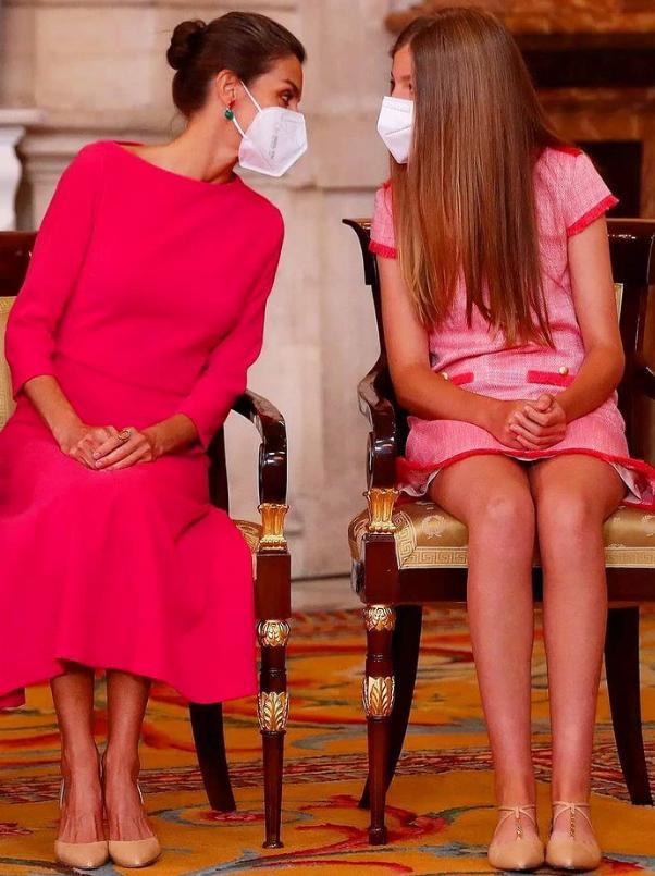 感觉一下从小女孩长成了少女,身高都和妈妈——西班牙王后莱蒂齐亚差不多高了,乍一看,网友都有点认不出来了…