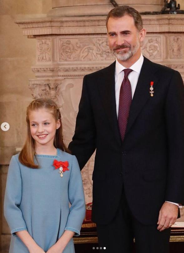 2014年,费利佩六世正式登基,成为西班牙的国王,当年只有9岁的莱昂诺尔也正式成为了王位继承人。