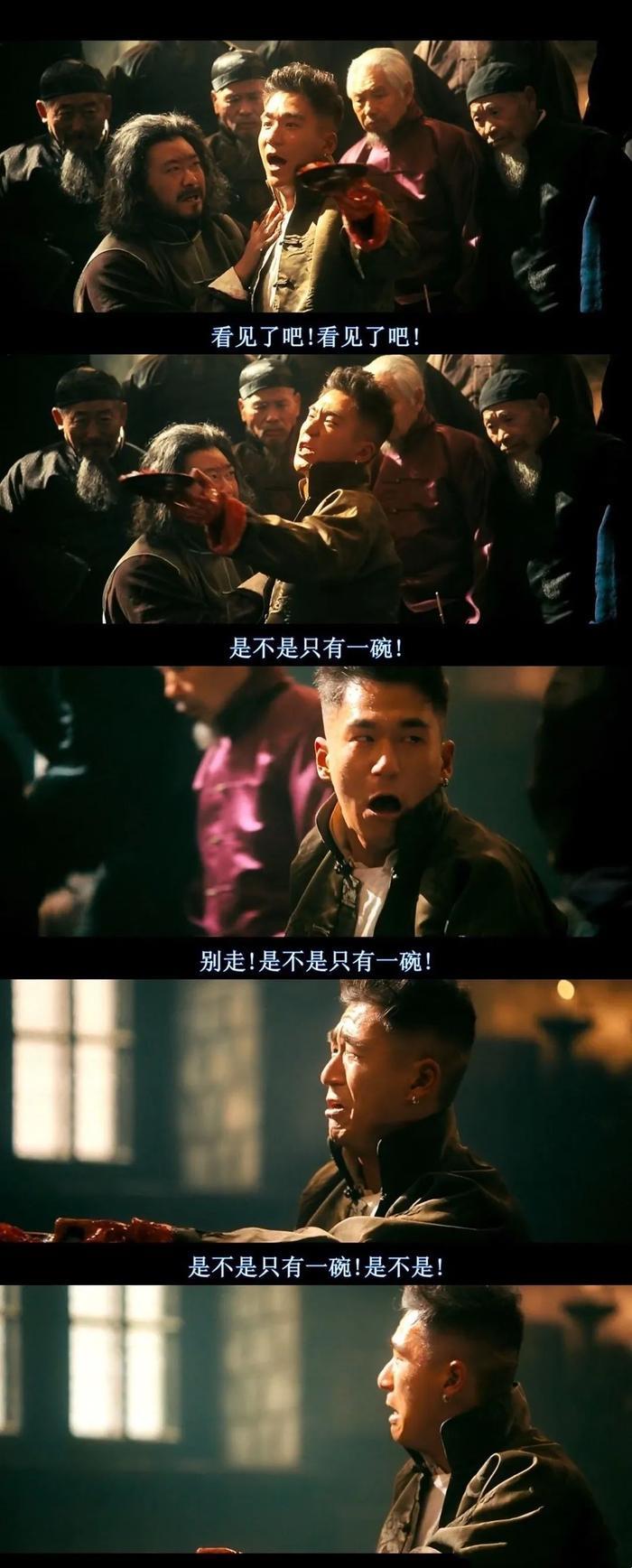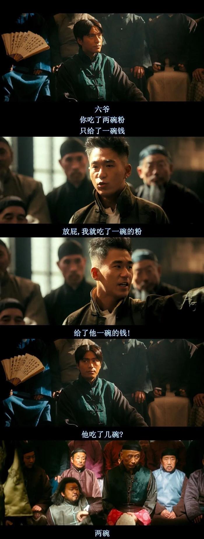 黄四郎和六子对峙,黄四郎带着手下作梗,鼓动人群,污蔑六子吃了店家两碗凉粉,却只给了一碗的钱。