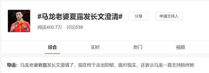 在夏露的文字中,她还表示过,马龙真的很好,前几年她因为谣言抑郁,天天哭,跟马龙提分手,马龙却一直支持陪伴她。