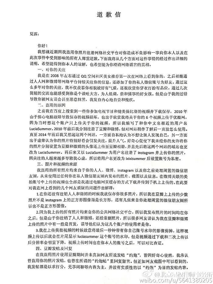 原来早在2016年,夏露就发过律师函,那个冒充她做出不好事情的人,也写了道歉信!