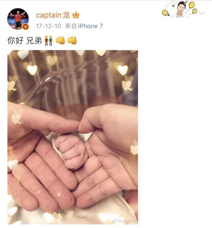 2017年12月,马龙夫妻得子,他发微博说:“你好 兄弟”