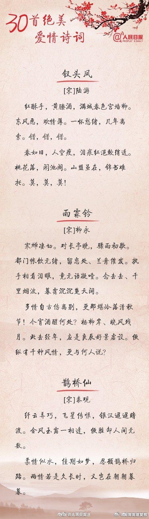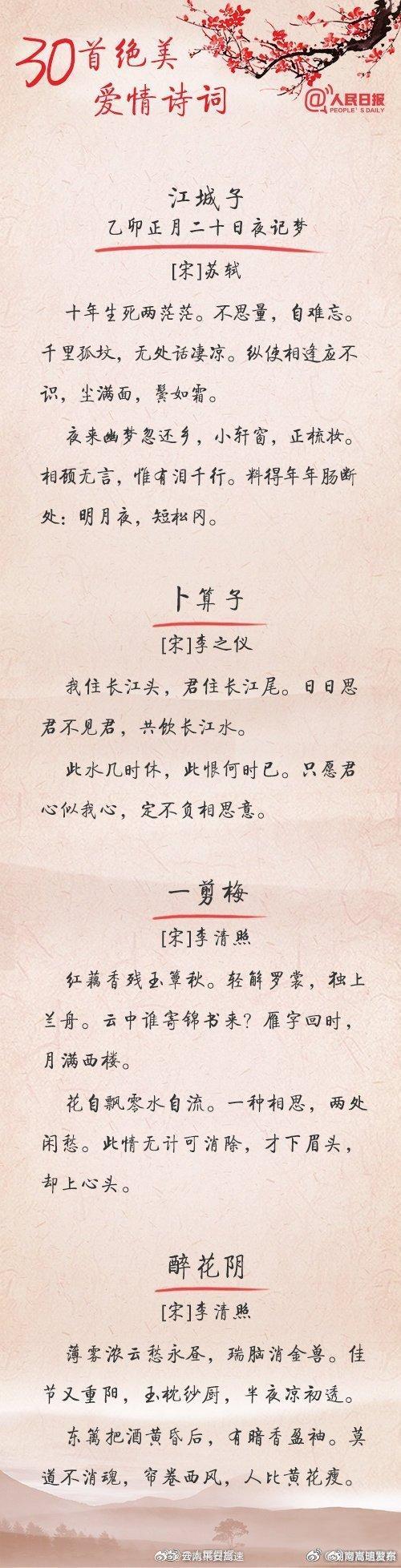 适合隐晦公布恋情的文案来一把高端局么 “玲珑骰子安红豆,入骨相思知不知”、“曾经沧海难为水,除却巫山不是云”…30首爱情诗词??用古诗词刷爆朋友圈吧 (人民日报)