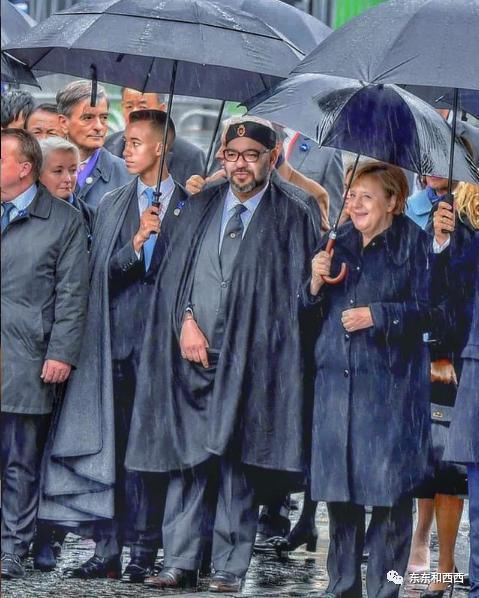 大雨中,他撑起巨大的伞罩住父亲,与默克尔同行↓↓