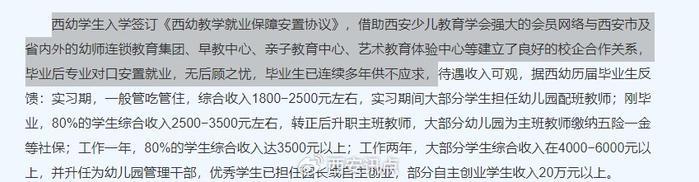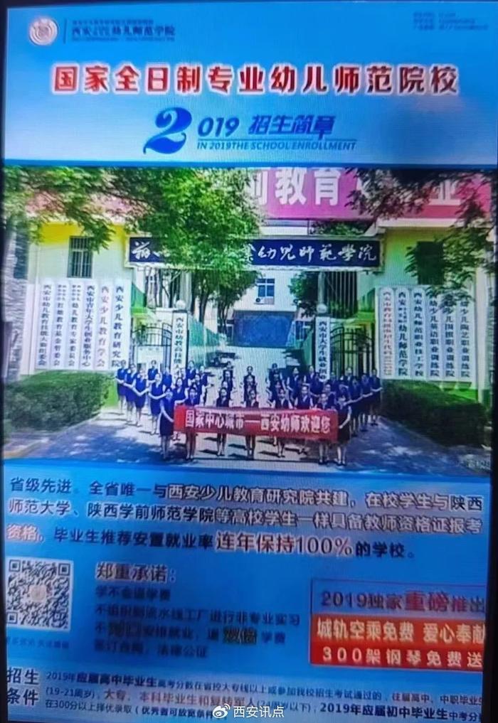 “我们家长就是再不懂,也知道函授文凭和全日制文凭是不一样的,学校承诺的管就业没有兑现,就不说了,孩子拿着函授的文凭,去试了西安好多家幼儿园,人家连实习都不让,说只招收全日制大专的实习生”。