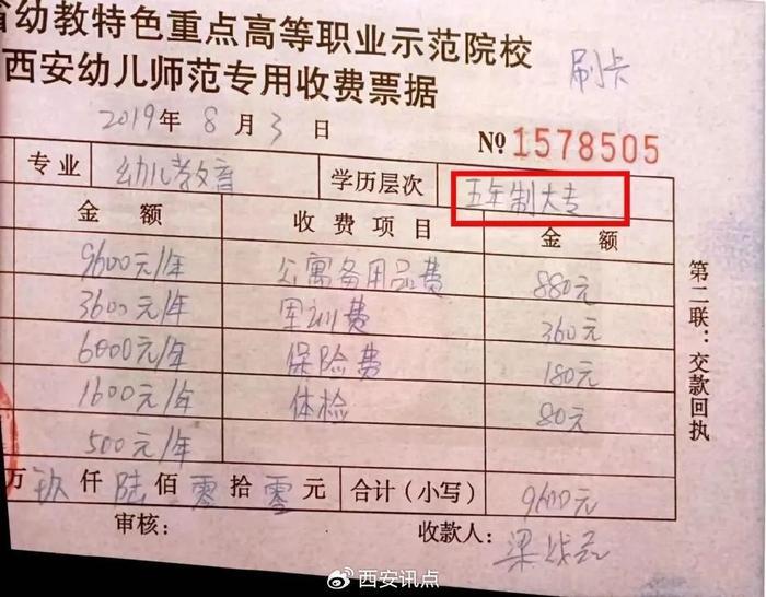 而报名之后,她获取的收费票据,也在“学历层次”一栏赫然写有“五年大专”几个字。这更让王红深信不疑,认为孩子上的就是一所统招的五年制大专院校。
